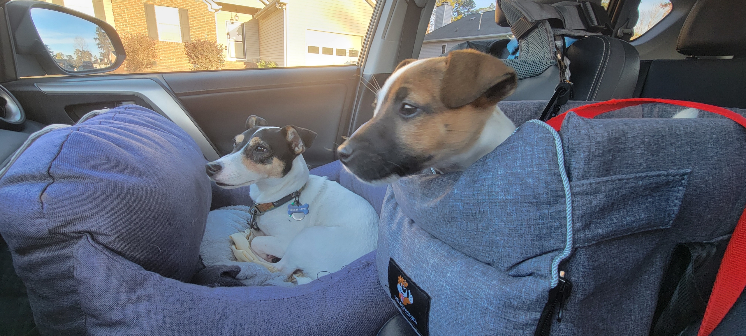 Roxie found her home in North Carolina. She loves riding shotgun!